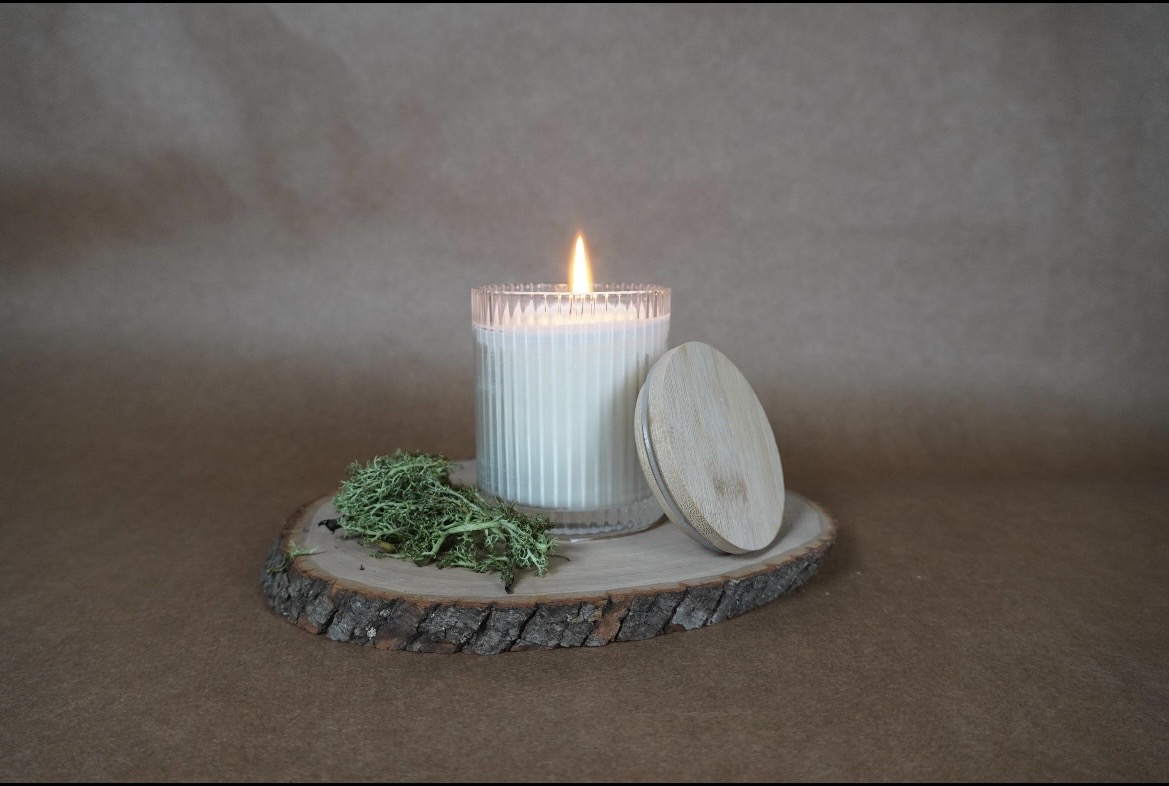 Bring effortless elegance and cozy ambiance into your space with our hand-poured soy candle, crafted in a beautifully decorative fluted container with a matching lid. Designed to be both functional and timeless, this candle is made to be enjoyed long after the flame goes out.